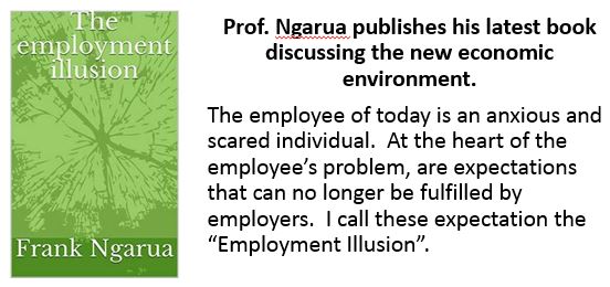 The fastest growing opportunities in today’s economic environment are temporary consultancies and entrepreneurial opportunities, which provide uncertainty in both revenues and continued availability. In this book, Prof. Frank Ngarua analysis the adopted “collectivist” cultures that have made employees unable to transition, and how both employees and employers can change these cultures to allow for a better outcome for both.
